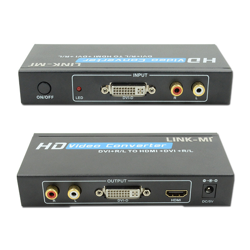LINK-MI LM-DVIH01این DVI-D با تبدیل Audio به HDMI سیگنال های DVI و آنالوگ صوتی را به خروجی HDMI با حلقه DVI تبدیل می کند. این به ما امکان می دهد منابع DVI و صوتی را به صفحه نمایش HDMI متصل کنیم.این دستگاه همچنین داده های ورودی TMDS را قبل از انتقال مجدد آن در کیفیت مطلوب بدون توجه به کیفیت سیگنال اصلی تقویت و برابر می کند